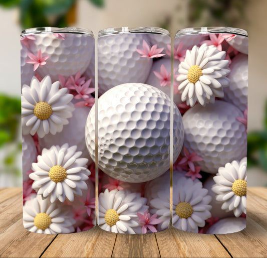 Golf Ball Pink Flowers - 20 oz Tumbler