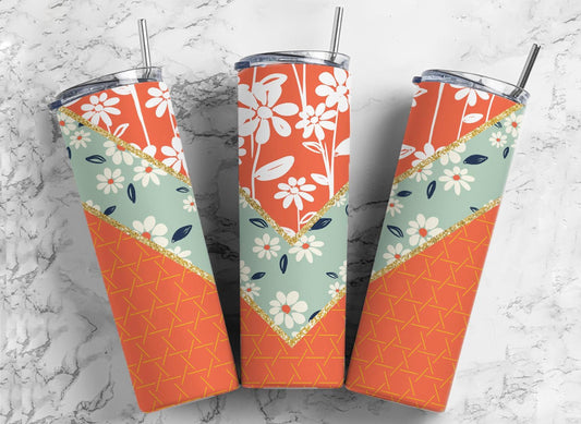 Orange & Sage Floral V Split - 20 oz Tumbler