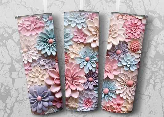 Pastel Daisy Flowers Faux (fake) 3D - 20 oz Tumbler