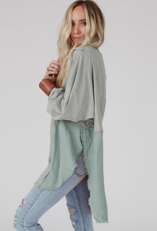 READY TO SHIP: XL - Crinkle Raw Hem Oversized Blouse