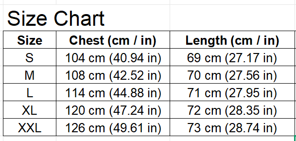 Sizes: S, M, L, XL, 2XL