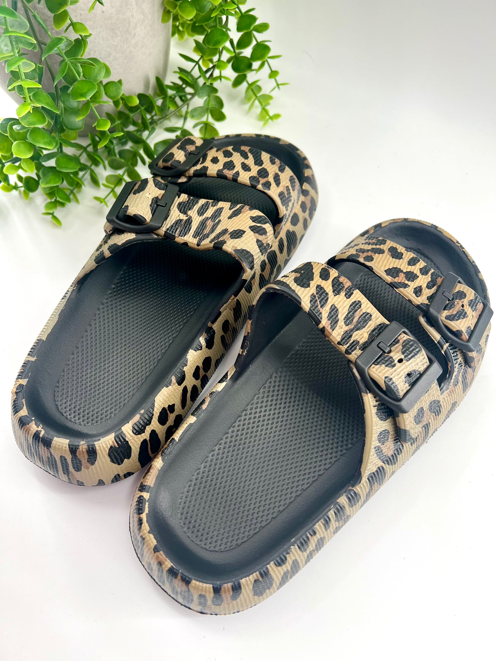 READY TO SHIP: Black Leopard Eva Slides